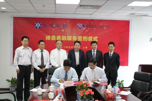 2012年5月16日上午,文通集團與中國信達資產(chǎn)管理有限公司上海分公司在集團公司14樓會議室舉行綜合金融服務簽約儀式,文通集團李剛董事長與信達資產(chǎn)上海分公司顏祖旺總經(jīng)理簽署了合作協(xié)議。