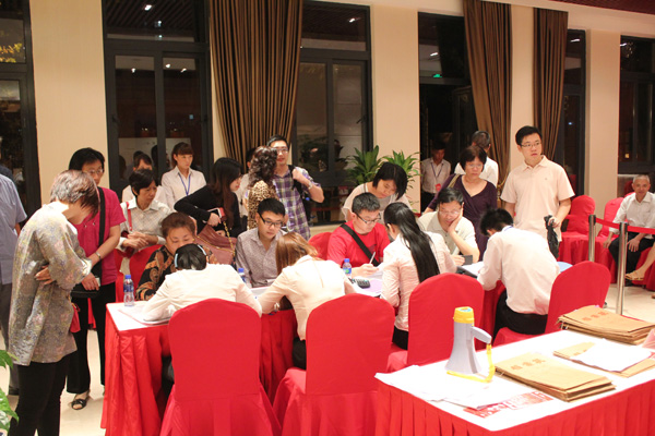 在等候區(qū)域,售樓處工作人員詳細(xì)為購房者介紹文通雅苑房屋結(jié)構(gòu)和購置條款等詳細(xì)信息,室內(nèi)一派熱鬧景象。購房者秩序井然的排隊拿號選房、下定和簽約。