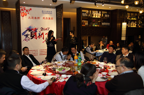 2017年1月13日,文通集團、民泰集團2017迎新年會,在漢唐品粵楊浦壹號店舉隆重舉行!在這萬象新,歲月交替之際,我們一起告別難忘的2016年,喜氣洋洋地迎接全新的2017年。 文通集團、民泰集團領(lǐng)導(dǎo)、全體員工及特邀佳賓出席了此次年會。 文通集團、民泰集團副總經(jīng)理李恬然上臺致辭,回顧了集團2016年所取得的成就:集團在董事局主席和集團董事會的正確決策下,集團全體員工同心協(xié)力,銳意拼搏,對外形象得到大幅的提升,在行業(yè)內(nèi)得到了充分的肯定,青海鹽湖硝酸鹽業(yè)股份有限公司重組完成,內(nèi)蒙通匯項目如火如荼,銷售公司目標任務(wù)圓滿完成,地產(chǎn)項目順利推進,物業(yè)管理井然有序,礦權(quán)交易所做好2017轉(zhuǎn)折年鋪墊,餐飲公司漸入正軌,取得了諸多驕人的發(fā)展成績,為文通轉(zhuǎn)型發(fā)展夯實了基礎(chǔ)。 本次晚會,抽獎活動分六輪,微信搶紅包活動分四輪舉行,抽獎環(huán)節(jié)高潮迭起,嘉賓漢唐集團陳漢星董事長精彩的魔術(shù)表演是讓全場驚呼拍手稱贊!后,文通控股董事局主席李剛,文通集團董事長趙月圓、總裁張永勝以及嘉賓金總、仲總也為大家派發(fā)了喜慶的微信紅包,祝大家新年鴻運當(dāng)頭照,財運滾滾來,大家反響熱烈,現(xiàn)場氣氛達到了高峰。 辭舊歲,我們豪情滿懷,迎新年,我們信心百倍。此刻,我們站在2017年新的起跑線上,我們將一如既往以腳踏實地的作風(fēng)、百折不撓的精神、堅韌不拔的毅力,團結(jié)奮進、革舊創(chuàng)新、扎實工作,不斷開創(chuàng)集團發(fā)展新境界!