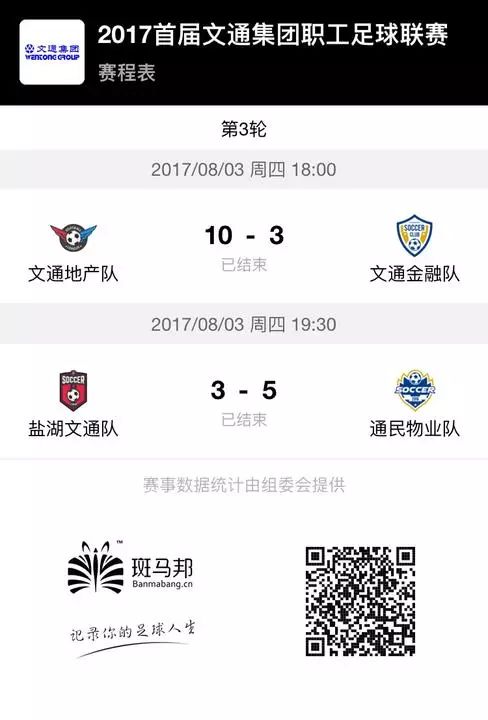 第一場 第一場比賽由文通地產(chǎn)隊對陣文通金融隊,文通地產(chǎn)隊在此輪比賽之前已經(jīng)收獲兩連勝,而文通金融隊則是兩連敗,這也是一場事關(guān)冠軍爭奪的比賽。比賽剛開始兩分鐘,文通地產(chǎn)隊就由隊內(nèi)頭號射手董富之率先打入一球,隨后8號張榮榮再下一城,雖然文通金融隊由7號王晨宇扳回一球,但是文通地產(chǎn)隊隨后的瘋狂進攻讓文通金融隊的后防線招架不住,連丟8球,終文通地產(chǎn)隊以10:3的懸殊比分毫無懸念的拿下比賽,以三戰(zhàn)全勝的戰(zhàn)績奪得本屆比賽的冠軍!而文通金融隊則憾吞三連敗的苦果,位列積分榜后一名。