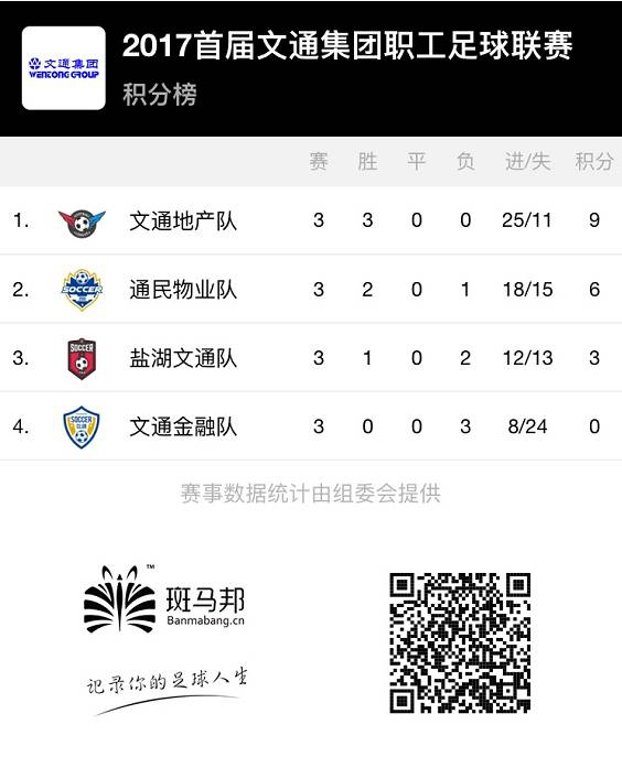經(jīng)過三輪6場緊張激烈的比賽,2017年首屆文通集團足球聯(lián)賽終于圓滿結(jié)束。本次比賽給我們留下了很多美好的時刻以及珍貴的回憶,我們也不會忘記球員在球場上頑強拼搏的精神、啦啦隊不離不棄的支持以及各級領(lǐng)導對每位球員深切的關(guān)心和溫暖的鼓勵,這些都將是第一屆比賽珍貴的財富!有著首屆聯(lián)賽良好的開端,讓我們加盼望著第二屆比賽的到來,也對下屆聯(lián)賽懷有多的憧憬和期望!