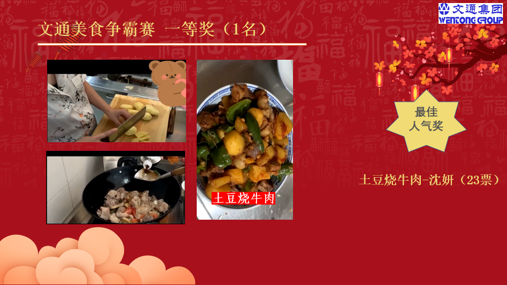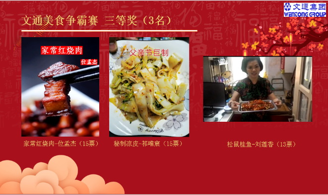 一道精美的菜肴,往往能夠帶給人美好的享受,一道獨具匠心的家常菜,往往讓人醉心與滿足。本次云上團建“美食爭霸賽”受到大家的熱捧,既豐富了員工疫情期間的生活,也活躍了辦公氛圍,大家在輕松、快樂的環(huán)境下齊心聚力、共同努力,促企業(yè)健康和諧發(fā)展。